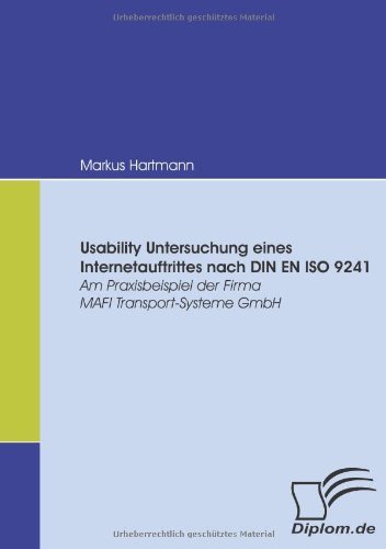 Lesen Sie Usability Untersuchung eines Internetauftrittes nach DIN EN ISO 9241. Am Praxisbeispiel der Firma MAFI Transport-Systeme GmbH Buch jetzt online. Sie können auch andere Bücher, Magazine und Comics herunterladen. Hol dir jetzt online-Usability Untersuchung eines Internetauftrittes nach DIN EN ISO 9241. Am Praxisbeispiel der Firma MAFI Transport-Systeme GmbH. Ihr seid auf der Suche nach Download oder kostenlos Usability Untersuchung eines Internetauftrittes nach DIN EN ISO 9241. Am Praxisbeispiel der Firma MAFI Transport-Systeme GmbH zu lesen...? Genießen Sie es.